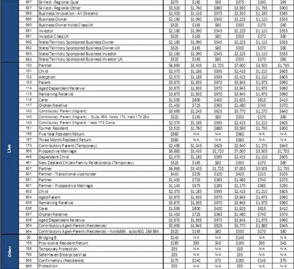 主申請人的學生簽證費將從550元漲至560元,未成年申請人的簽證費將從410元漲至420元。雇主提名(Employer Nomination)和次發(fā)達地區(qū)擔保移民計劃(Regional Sponsored Migration Schemes)的簽證費將漲價70元,從3600元漲至3670元。配偶簽證(Partner visa)費用將從6865元升至7000元。