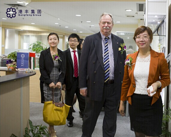 阿聯(lián)酋哈伊馬角政府投資局Mr. Peter-Michael Shuster一行正在參觀港豐集團深圳公司辦公區(qū)域